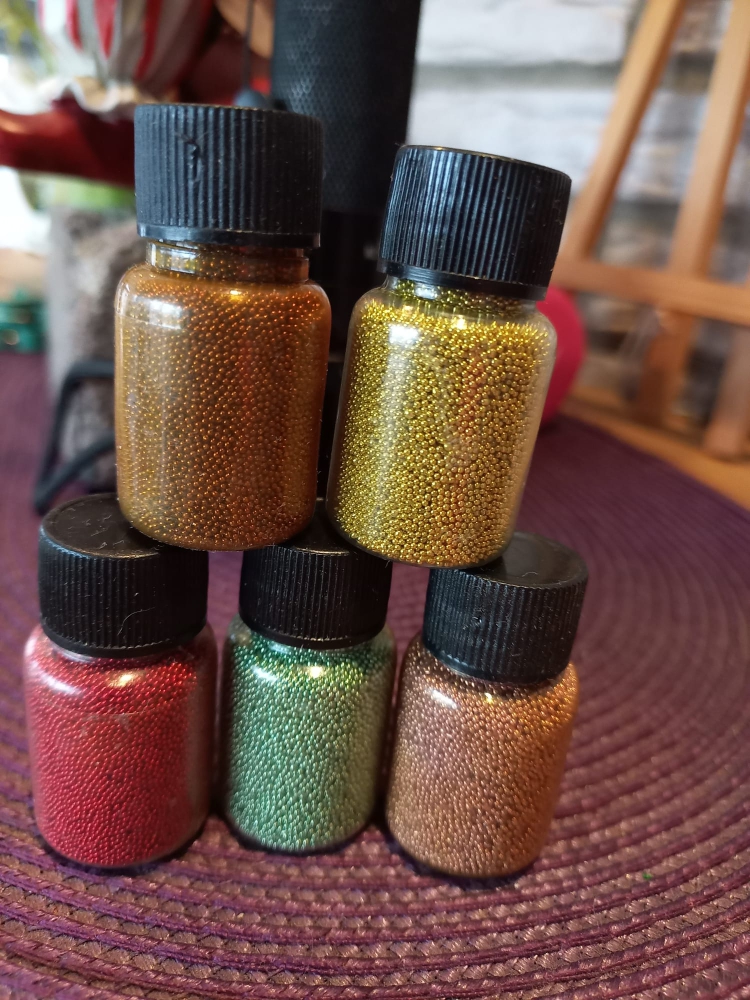Glasperlen zur Kartengestaltung.