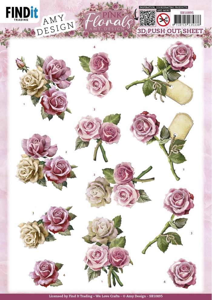 SB10895 AD Stanzbogen Pink Florals Rosen