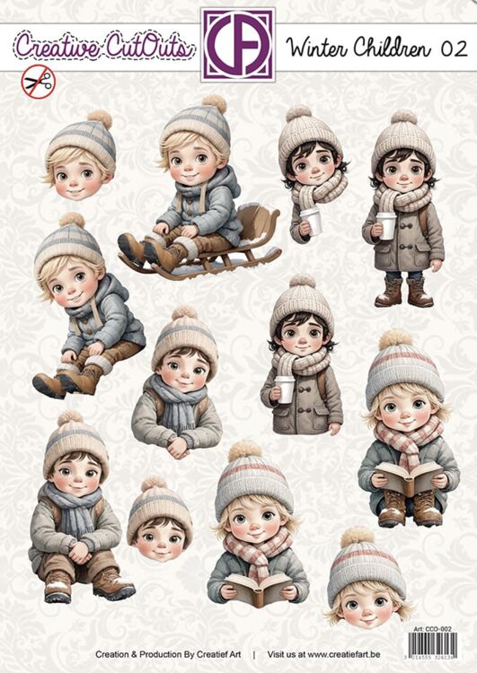 CCO-002 Winter Kinder 02 Stanzbogen Mädchen mit Mutze und Schlitten 4 verschiende Motive